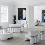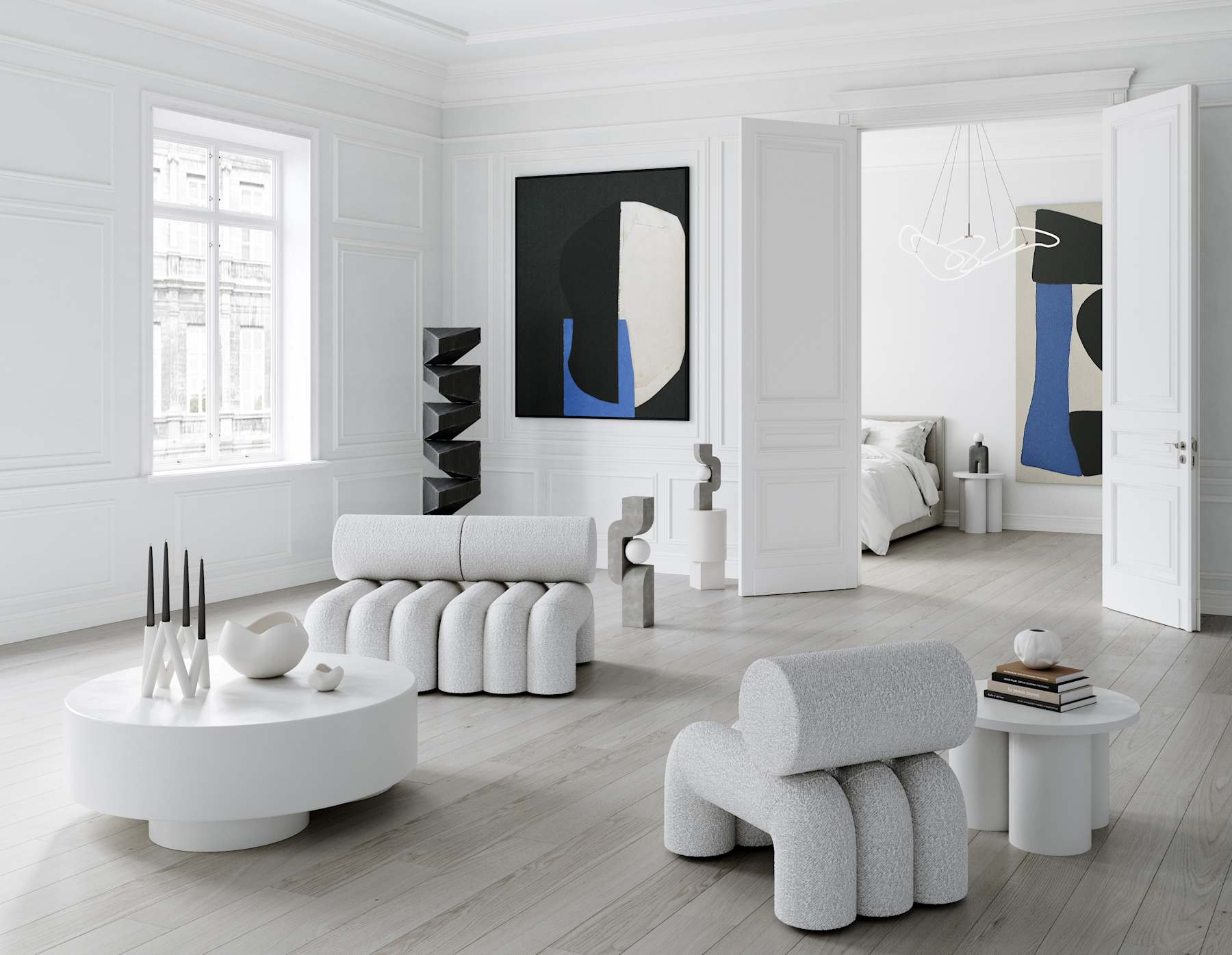 Bellavè har gleden av å presentere Big Foot-kolleksjonen – en serie møbler som ved første øyekast gir inntrykk av tyngde og soliditet. Ved nærmere øyesyn oppdager du imidlertid en overraskende letthet, takket være materialvalg i fiberbetong. Sofabordet kombinerer et kraftfullt uttrykk med praktisk funksjonalitet, og lar deg enkelt flytte dem ved behov. Inspirasjonen er hentet fra brutalistisk arkitektur og moderne skulptur, noe som gir kolleksjonen et særegent og iøynefallende design. De sylindriske bena tilfører et moderne og sofistikert preg, mens den taktile, malte overflaten gir spennende dybde og karakter. Hvert enkelt møbel skiller seg ut med sin unike tilstedeværelse og tidløse sjarm. Big Foot-bordene leveres i to stilrene farger: Bone White og Coffee – designet av Kristian Sofus Hansen og Tommy Hyldahl.