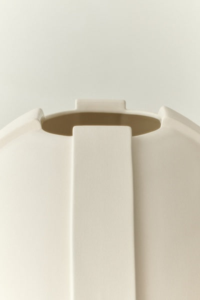 Hver vase er håndformet av erfarne keramikere i Portugal og utgjør den største modellen i serien. Med sine generøse proporsjoner står den sterkt alene som et kunstobjekt, og tilfører både volum, tyngde og visuell ro til interiøret.