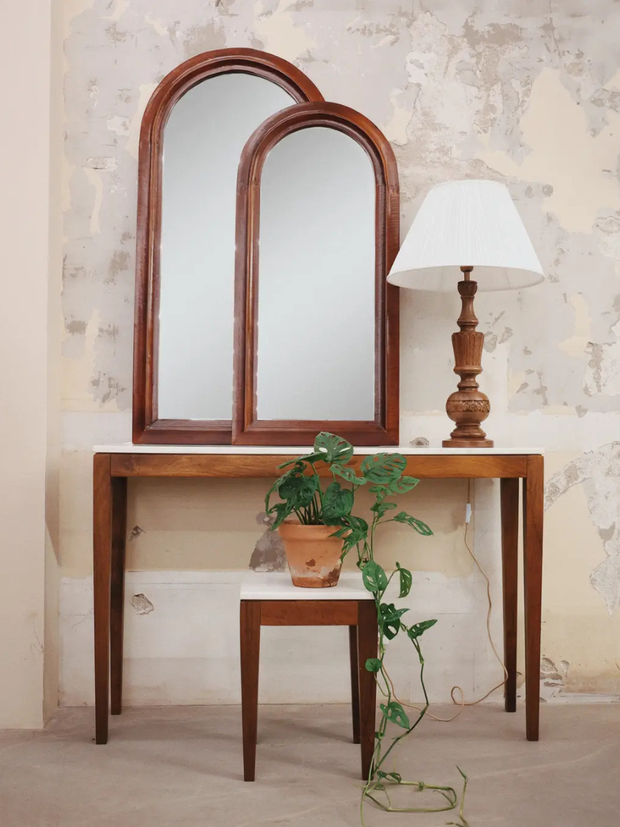 En elegant og tidløs konsollbord med moderne signatur. ByTimo Console Table i brunt tre kombinerer råmaterialer og design med funksjonell estetikk, og gir et sofistikert uttrykk i entré, stue eller langs en vegg.