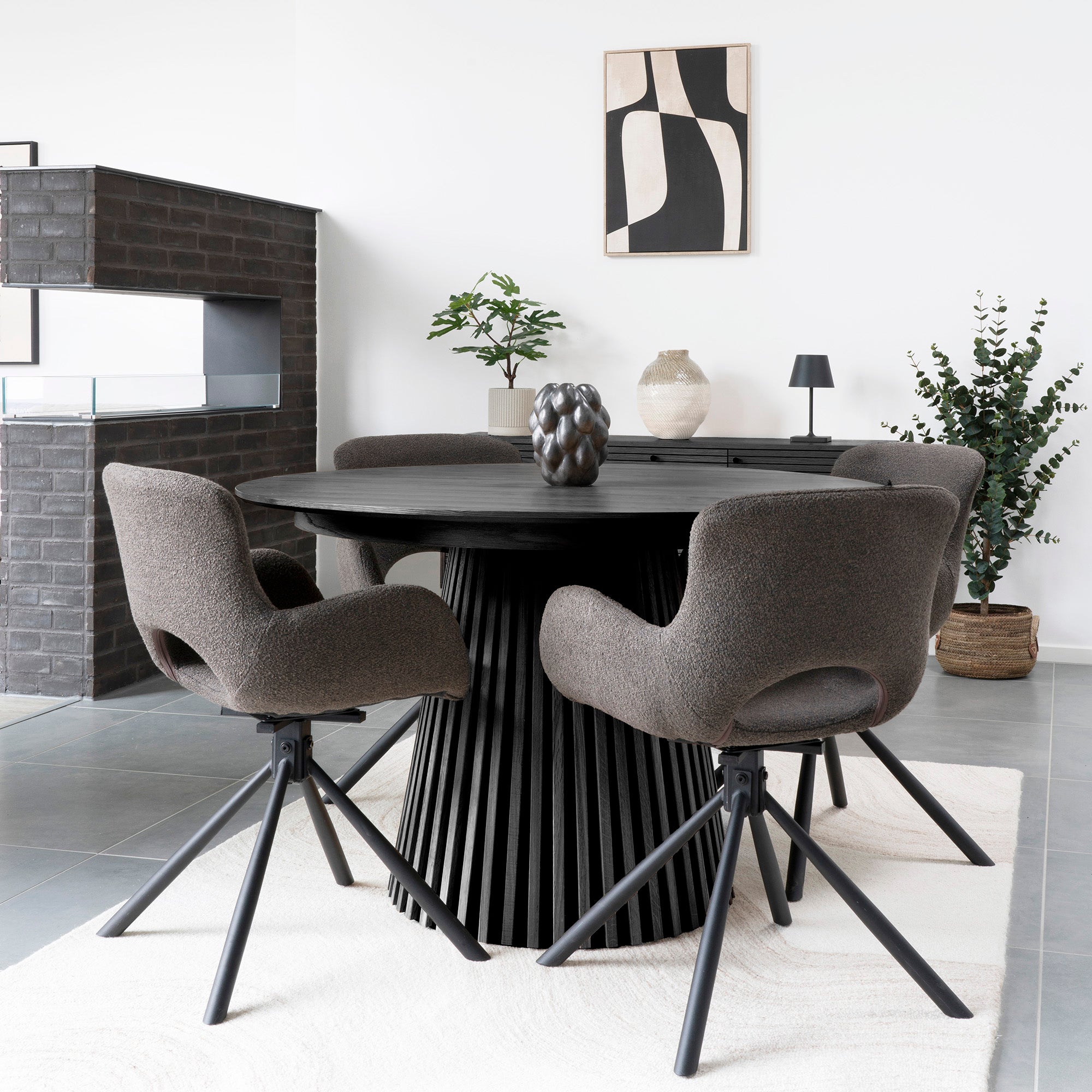 Tidløst, elegant og moderne – Osaka Dining Table fra House Nordic i sort eikefinér er et statement-møbel som tilfører både karakter og ro til rommet. Den runde bordplaten med sin dype, matte finish gir et eksklusivt uttrykk, mens den solide sokkelen i tre tilfører skulpturell balanse og styrke. Perfekt som et naturlig samlingspunkt for både hverdagsmiddager og sosiale kvelder.