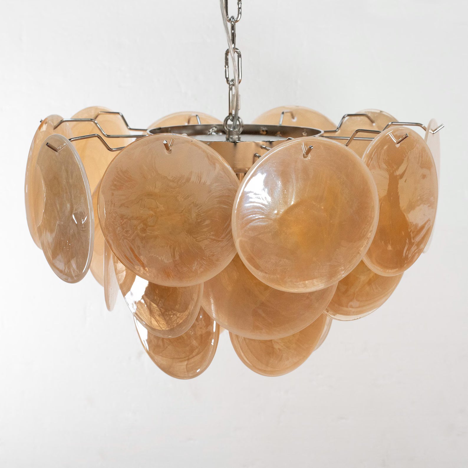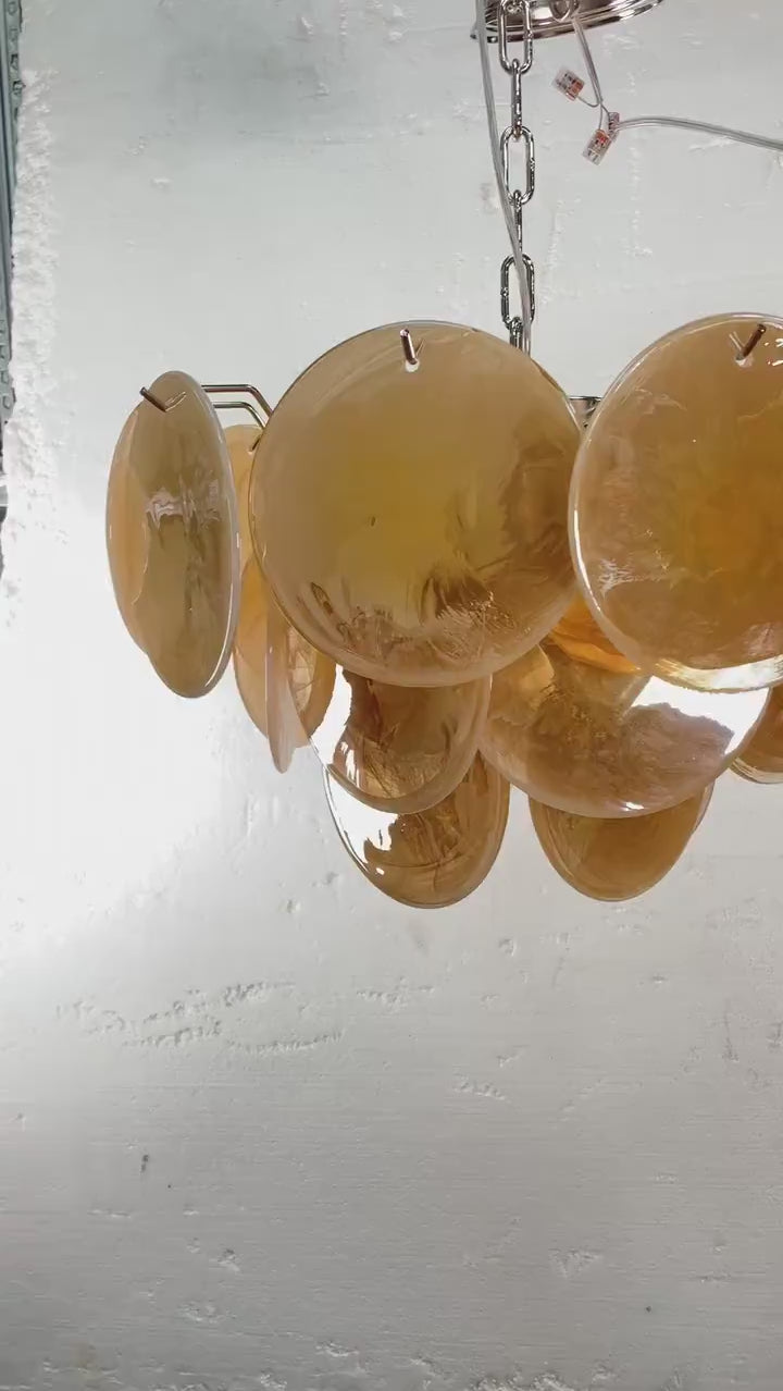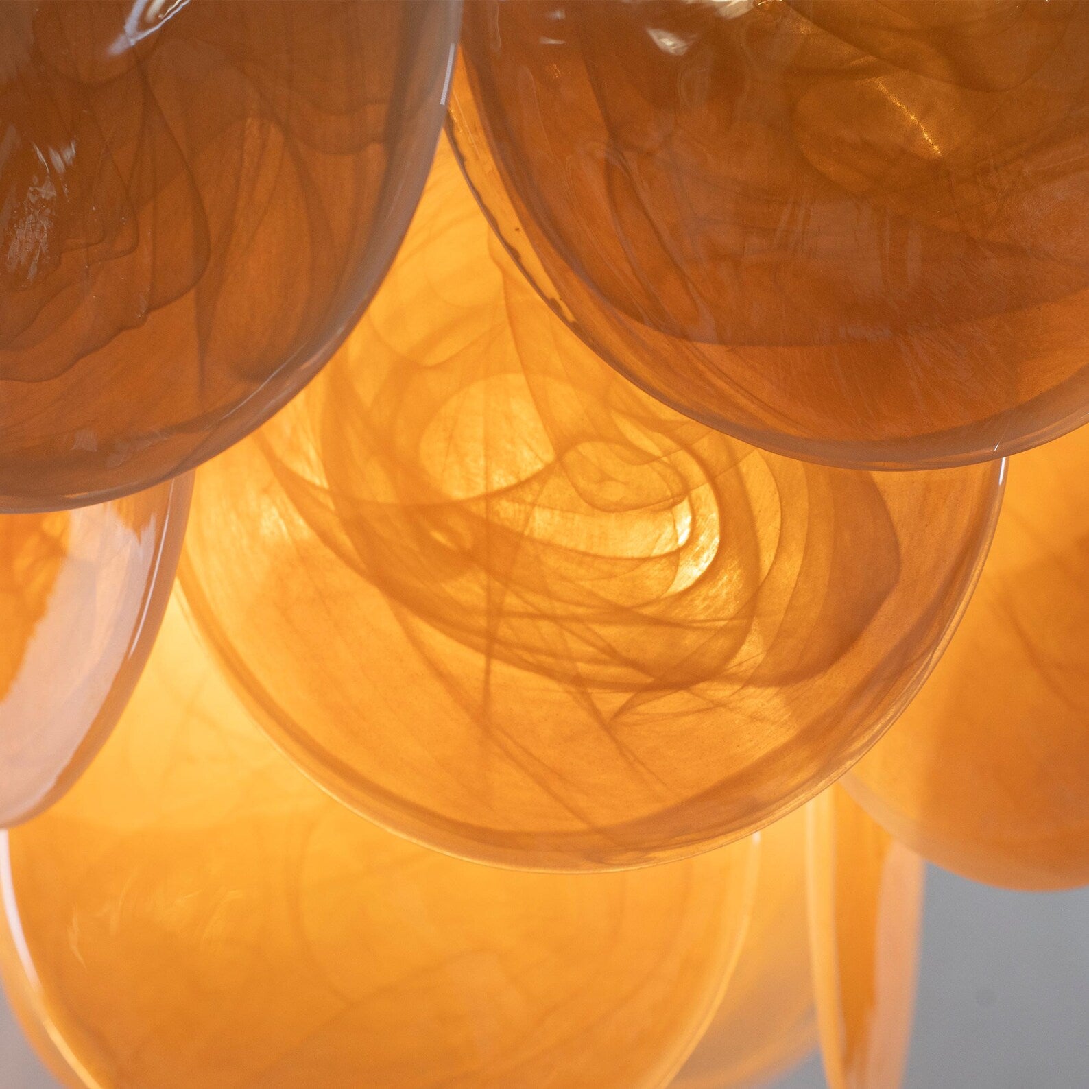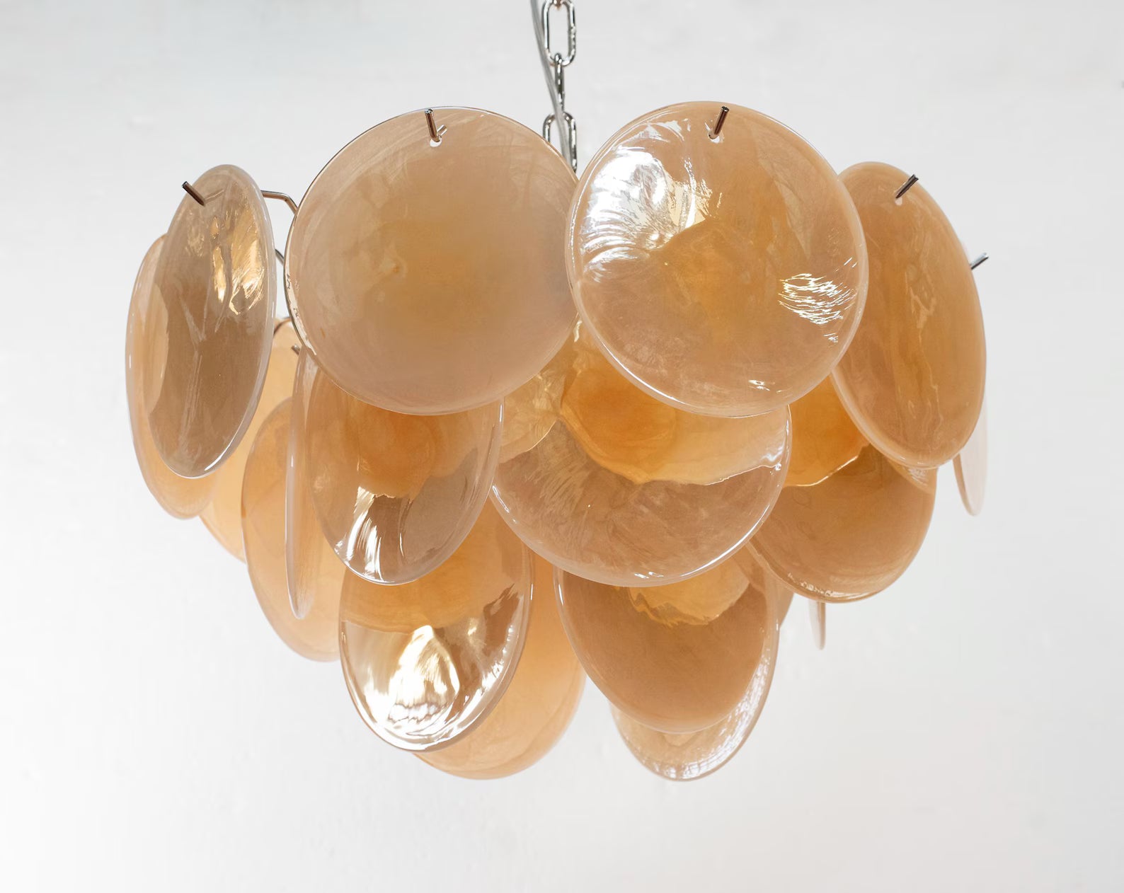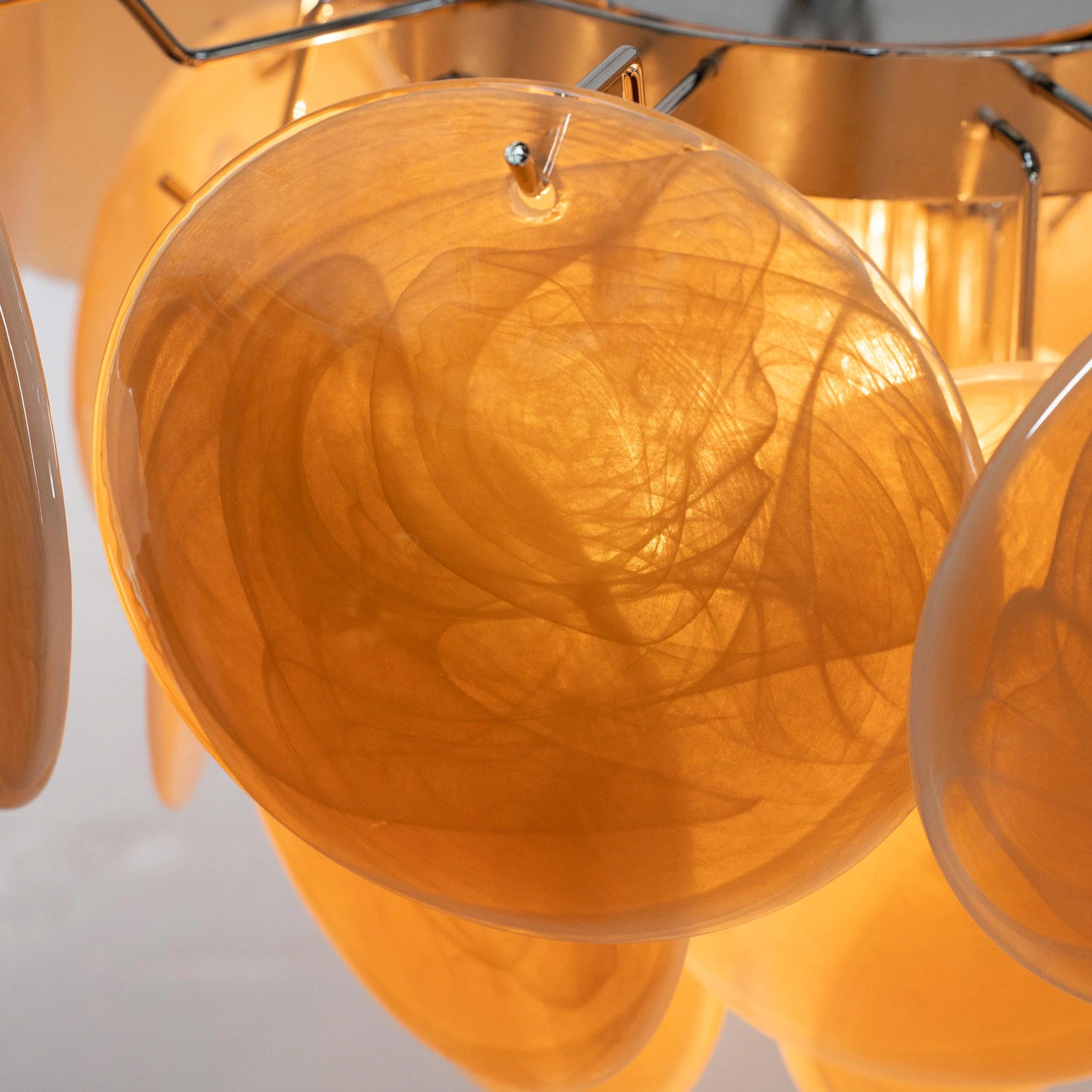 Et ikonisk uttrykk for italiensk håndverk – Murano Alabaster Amber Discs Chandelier.