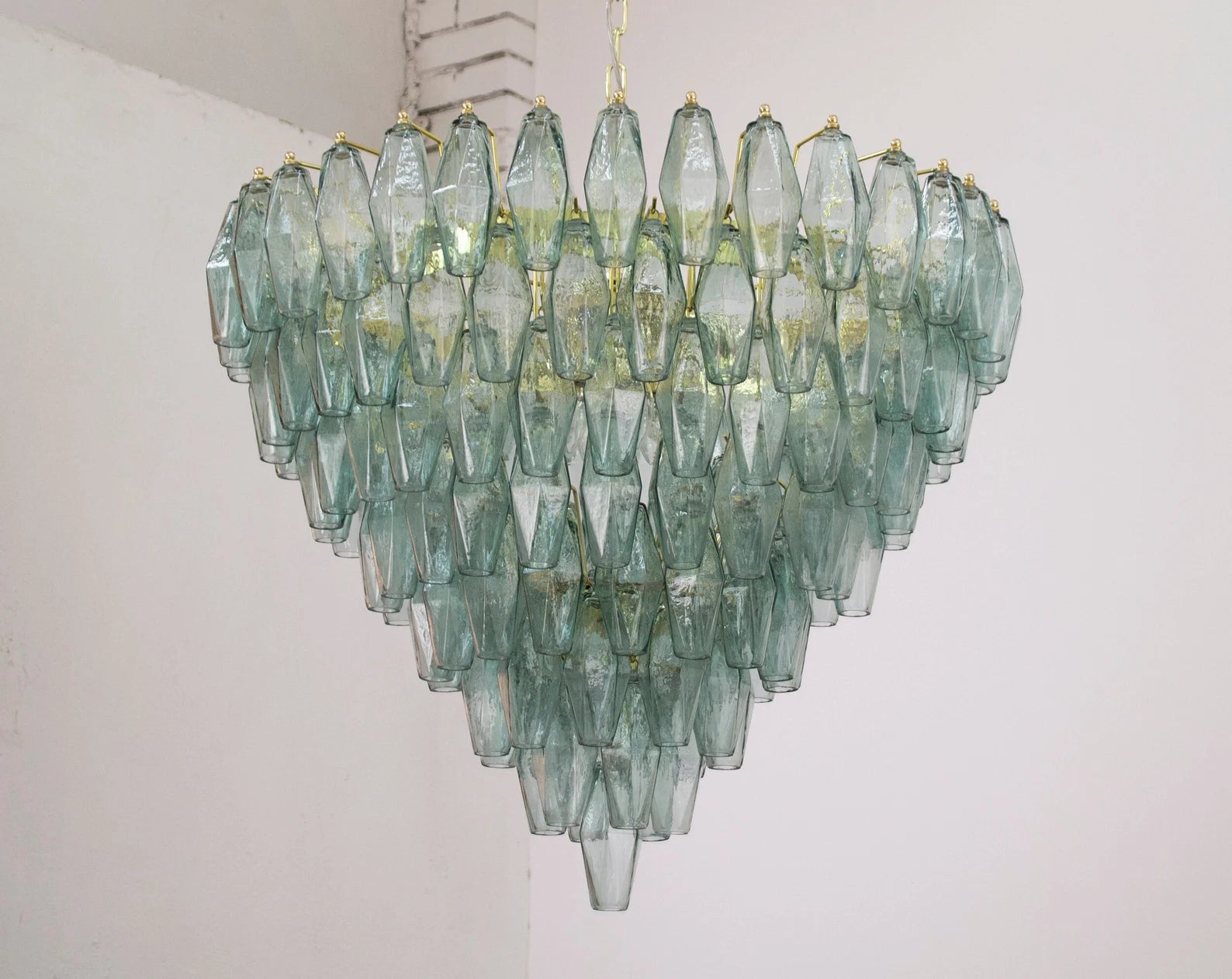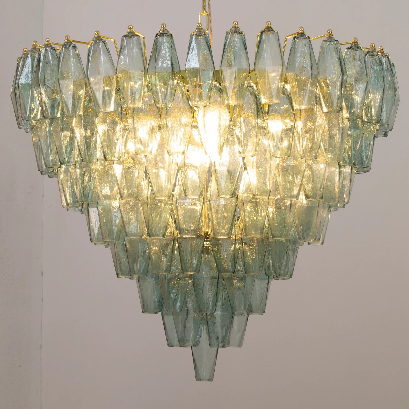 Hver polyederformet glassmodul er munnblåst og montert for hånd av erfarne glassmestere på Murano. Resultatet er et unikt kunstverk der hvert element vitner om ekte italiensk håndverk og tradisjon. Kombinasjonen av den grønne fargetonen og lampens geometriske struktur gjør den til et statement i både moderne og klassiske miljøer.