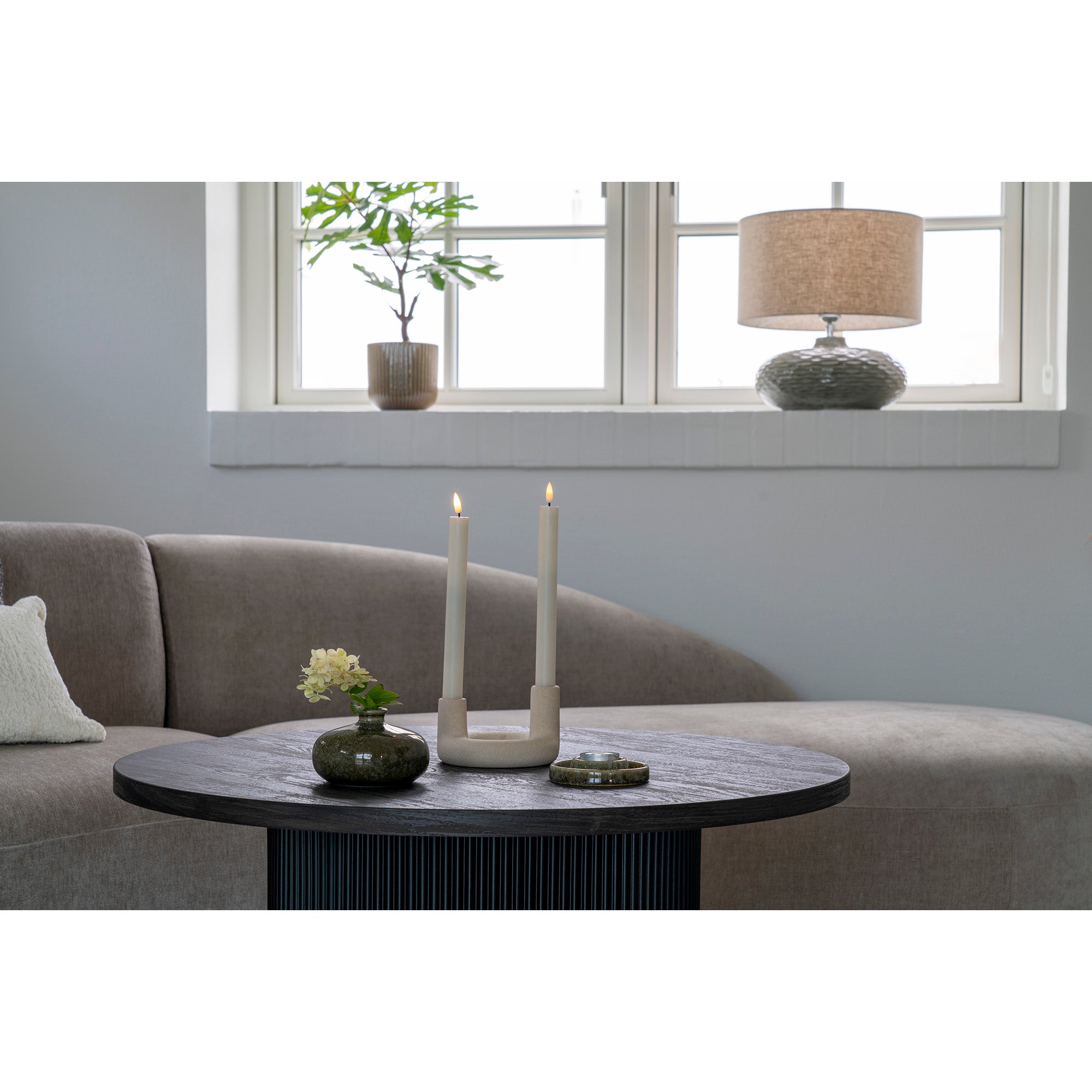 Den skulpturelle Luma-lysestaken fra Bellavè er et moderne uttrykk for balanse og ro. Den runde silhuetten og de to lysåpningene skaper et harmonisk spill mellom form og funksjon – et diskret, men elegant blikkfang på spisebordet, konsollbordet eller i vinduskarmen.